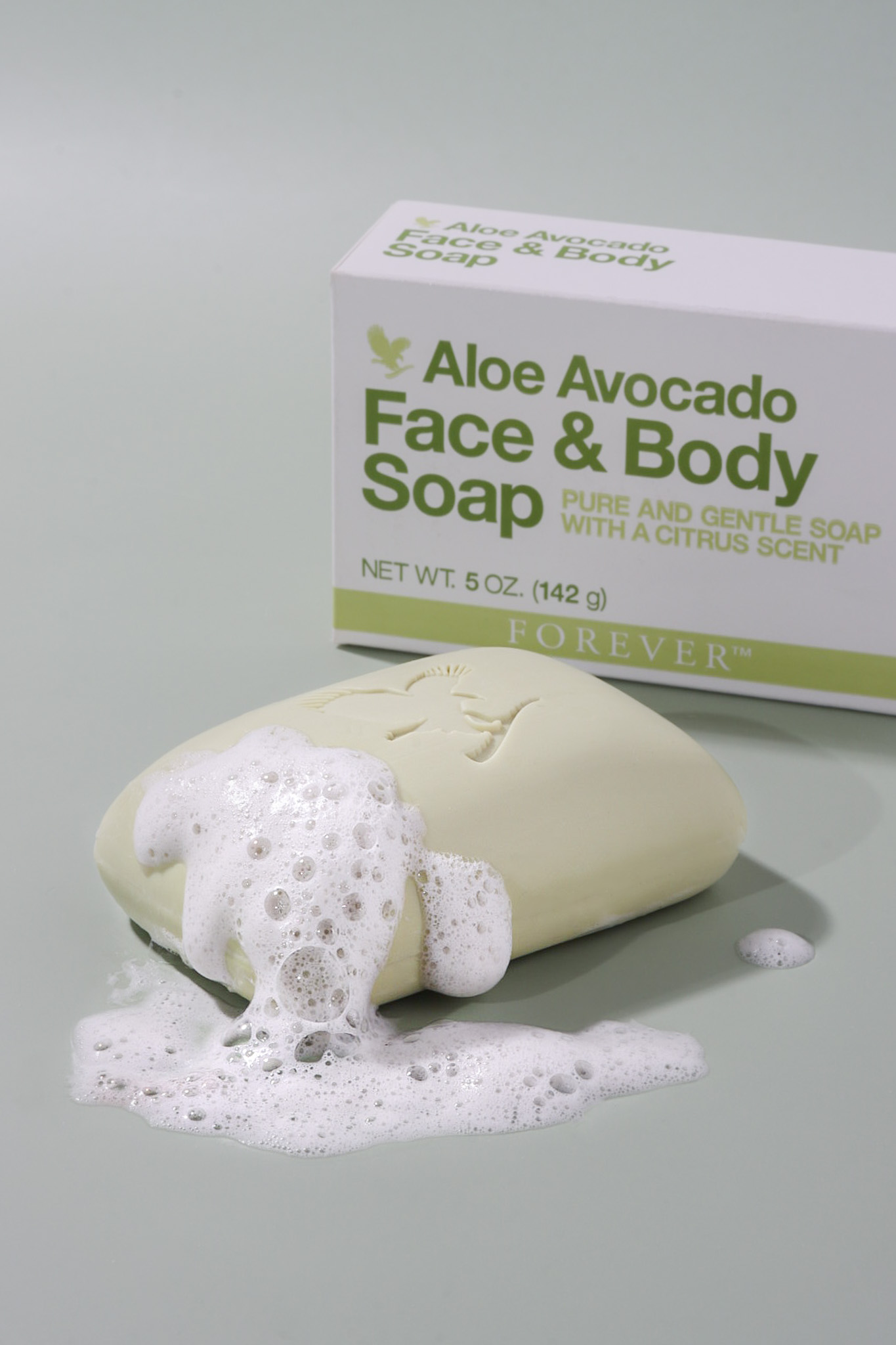 Aloe Avocado Face & Body Soap contiene aloe vera pura, cosechada a mano, para ayudar a acondicionar y suavizar, dejando la piel hidratada todo el día. Aloe Avocado Face & Body Soap de Forever suaviza, nutre e hidrata sin irritación, incluso las pieles más sensibles. Lo suficientemente suave para su cara o cuerpo entero, el aroma cítrico recién cosechado le ayudará a despertarse por la mañana y la suavidad del Aloe Avocado Face & Body Soap durará todo el día.